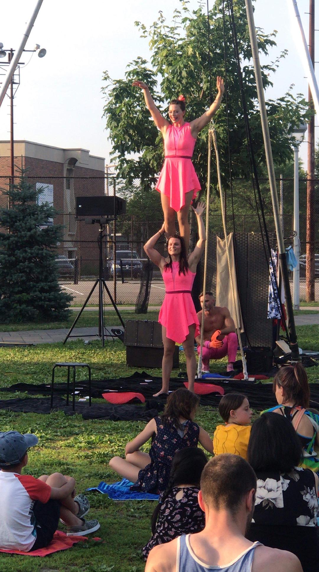 Anouk et Caroline vous présentent un spectacle aérien Les Soeurs Magiques, où les corps se fondent et s’emmêlent lors d’un moment magique et spontané. Le miroir de l’une est le reflet de l’autre. Une harmonie envoutante nait. Laissez vous emporté par la poésie, leur humour, leur joie de vivre, la beauté et l’agilité de ces deux femmes. Ensemble, elles offrent une panoplie de numéros de cirque en solo ou en duo. Leur spectacle les Soeurs magiques nous fait voyager à travers plusieurs disciplines de cirque : Solo de cerceau, , solo de trapèze danse, main à main, solo de tissu aérien cocon et micro-magie.