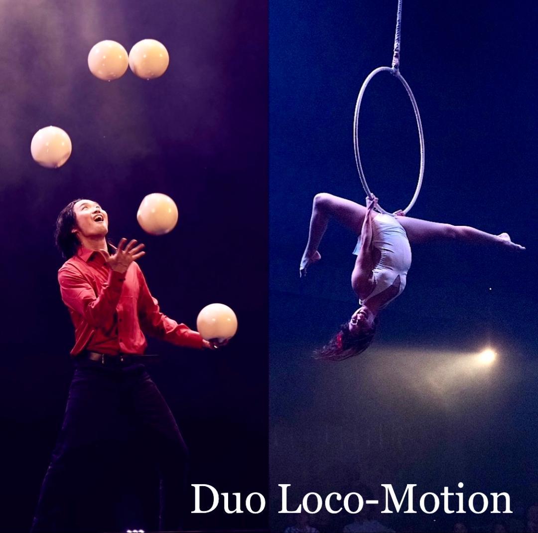 Le « Duo Loco-Motion » est un spectacle de cirque en salle et en extérieur, d’une durée de 50 minutes, créé en 2021 par la Québécoise Anouk Vallée-Charest et le Japonais Ryunosuke Yamazumi. Depuis sa première représentation, ce spectacle a voyagé à travers le Québec, le Canada et les États-Unis, captivant à chaque fois les spectateurs.
